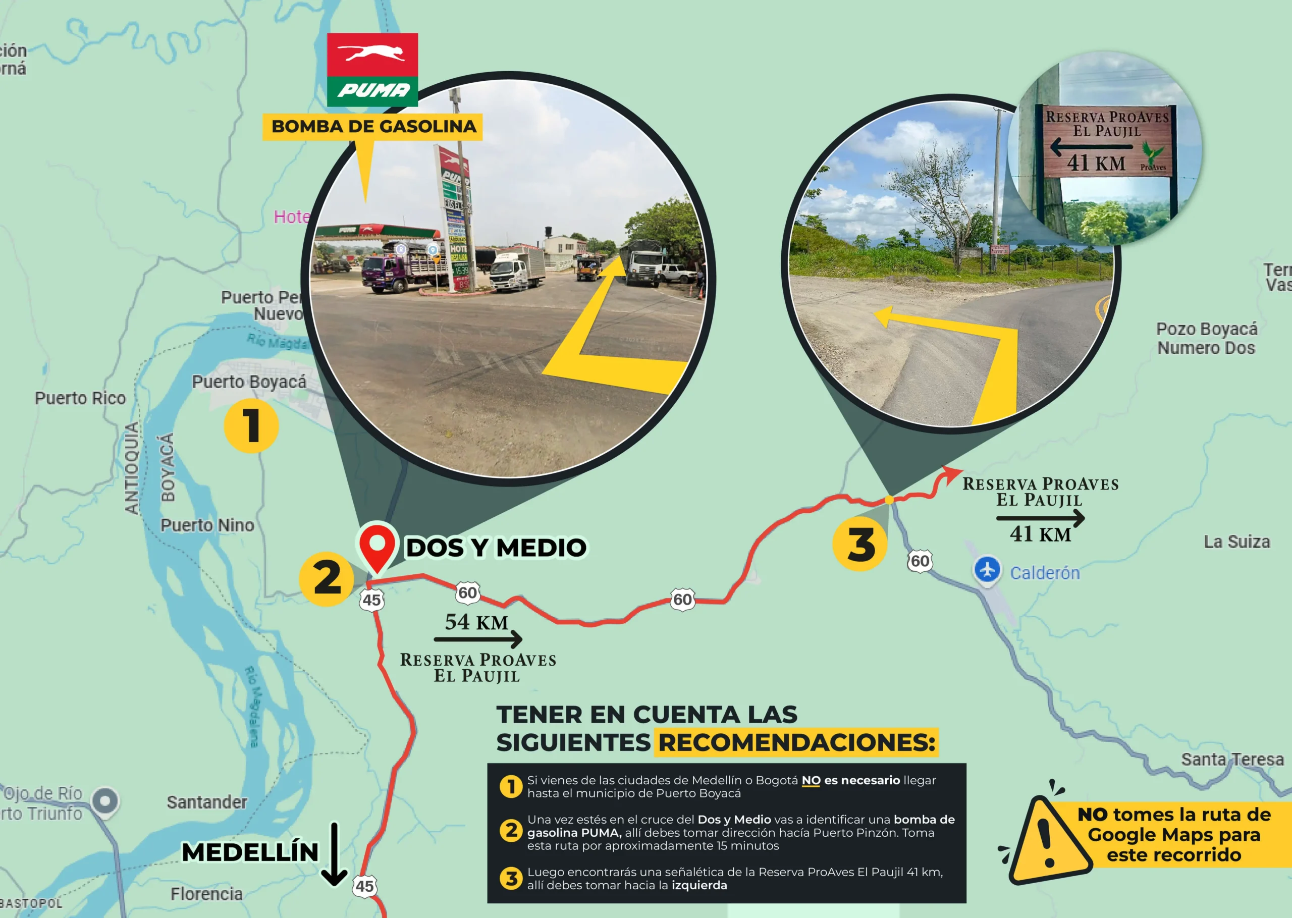 VERY IMPORTANT: Do not follow direct Google Maps directions to El Paujil Reserve.